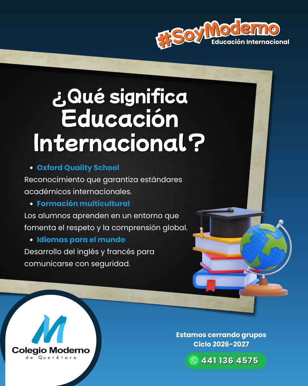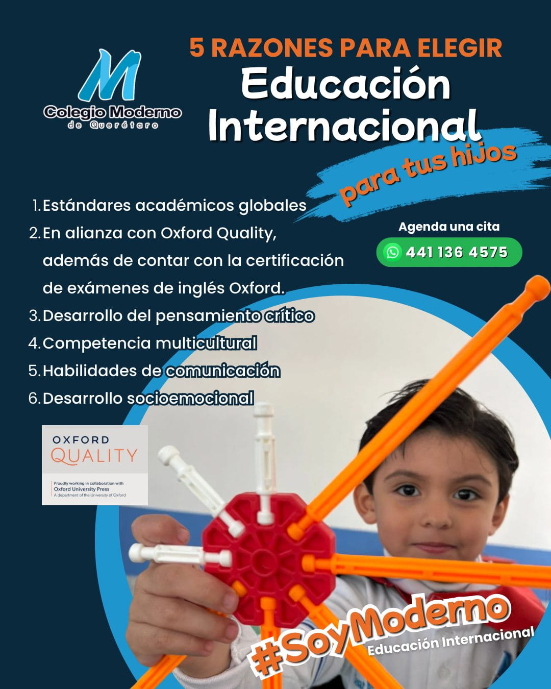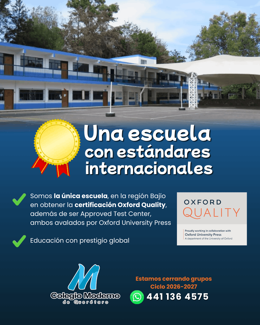 Educación Internacional, respaldada por Oxford University Press, una de las universidades y editoriales educativas más prestigiosas del mundo. Nos enorgullece ser la primera escuela en la región del Bajío en contar con la distinción Oxford Quality School, además de fungir como Centro Certificador de Exámenes de Oxford con validez oficial.